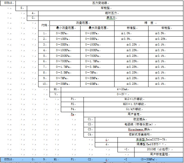 **隔爆型產(chǎn)品只提供07~10量程段選擇